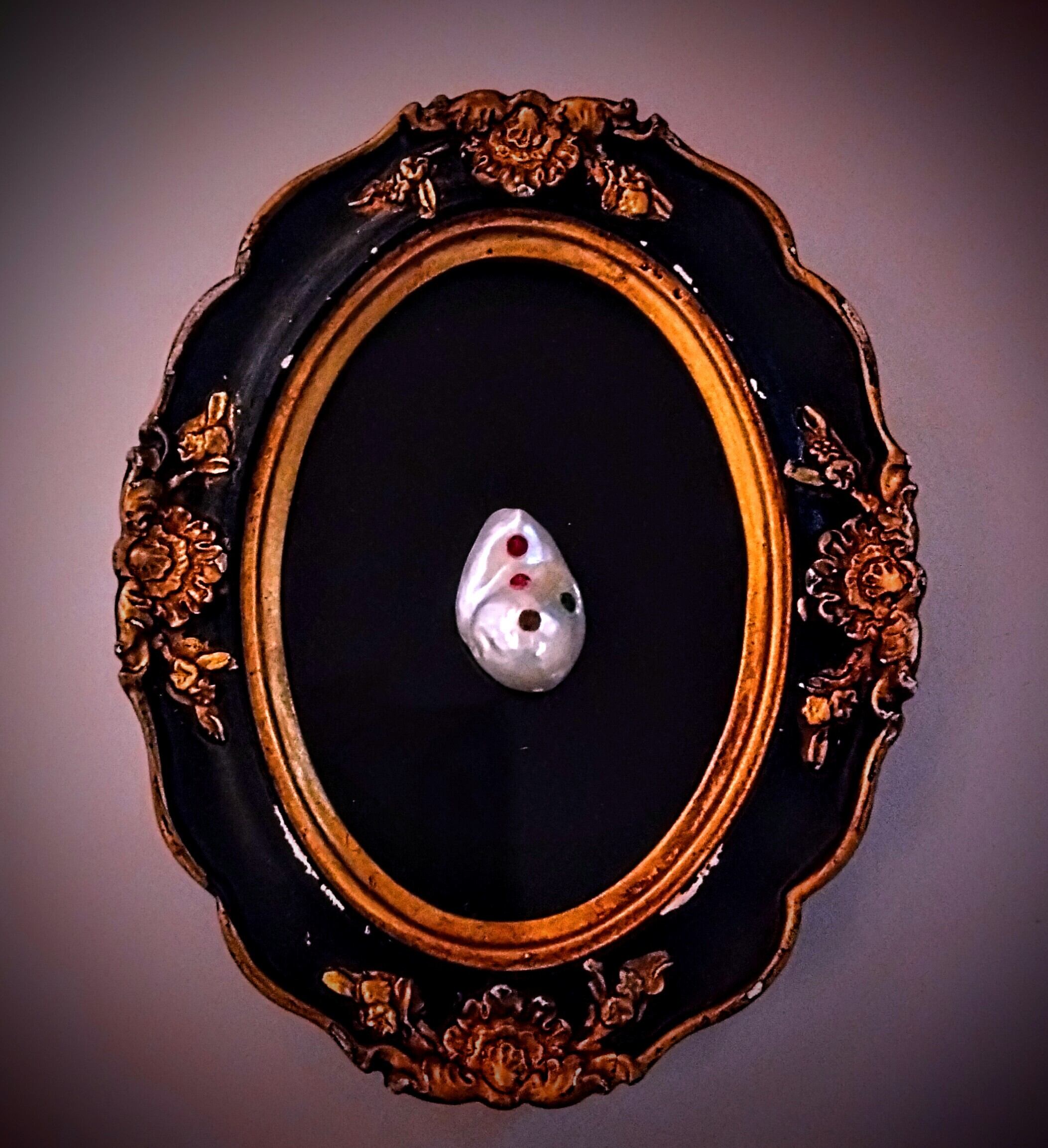 本物の宝石がはめ込まれた 斬新なバロックパールです。本物の真珠です。